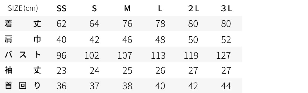 ※SS.Sサイズはレディスシルエット