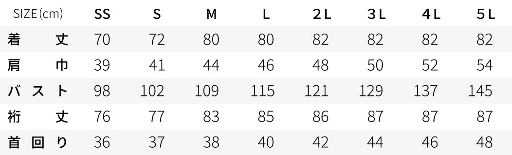 SS~5Lまでの幅広いサイズを定番でご用意しています。