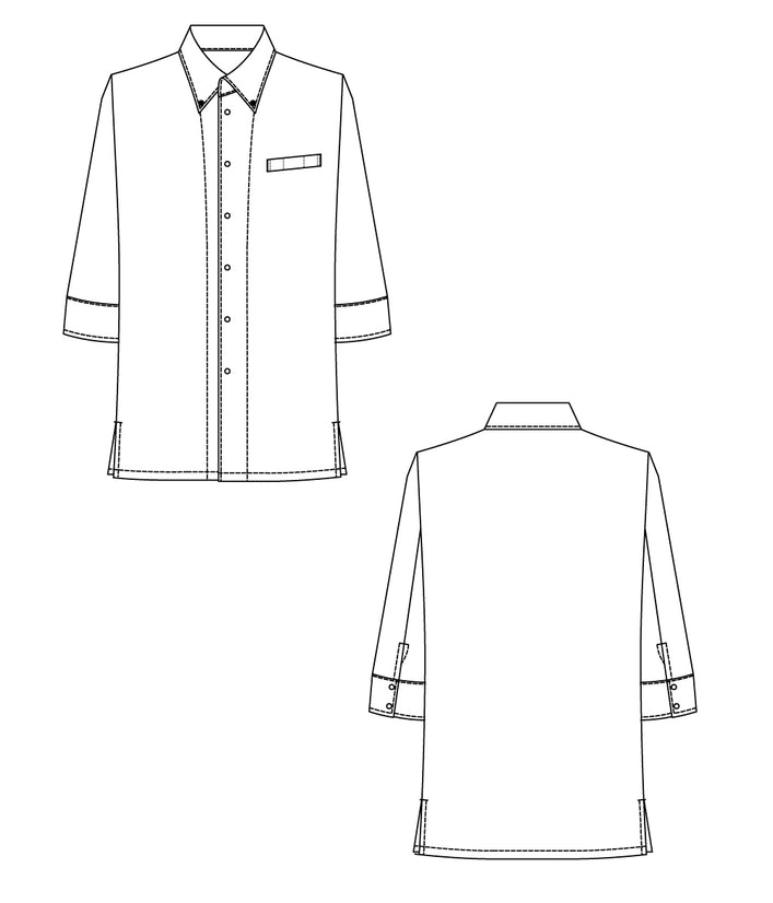 着こなしが綺麗に仕上がるハリ感をプラスした次世代パワーファブリック。小さなドットボタンとロールしたスキッパー襟がアクセント。ロングセラー商品をブラッシュアップして