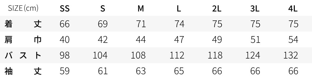 ※袖丈は袖をのばした状態での長さです。