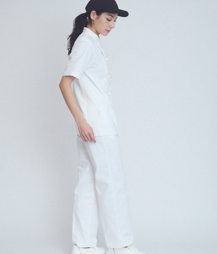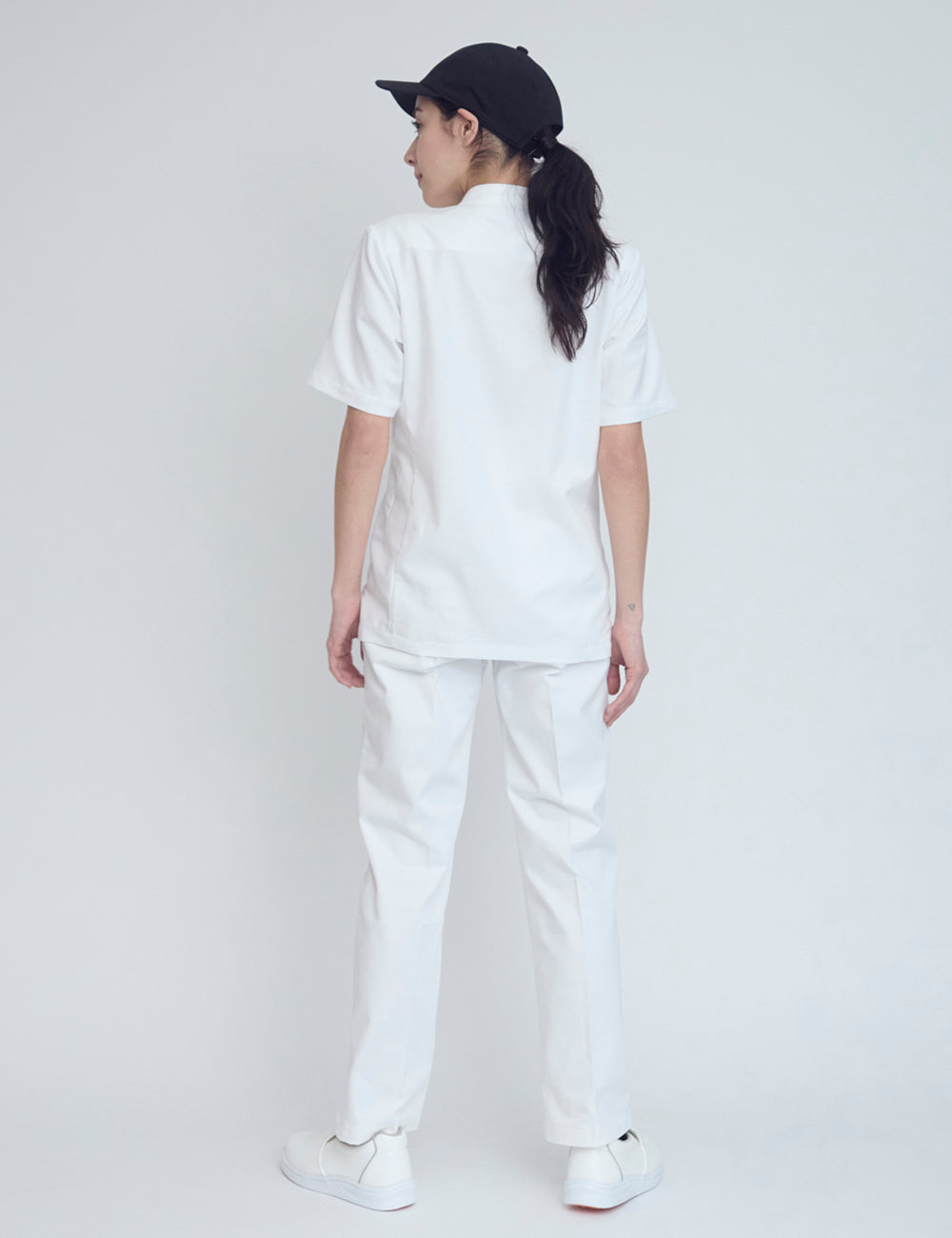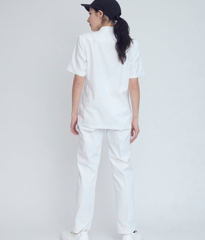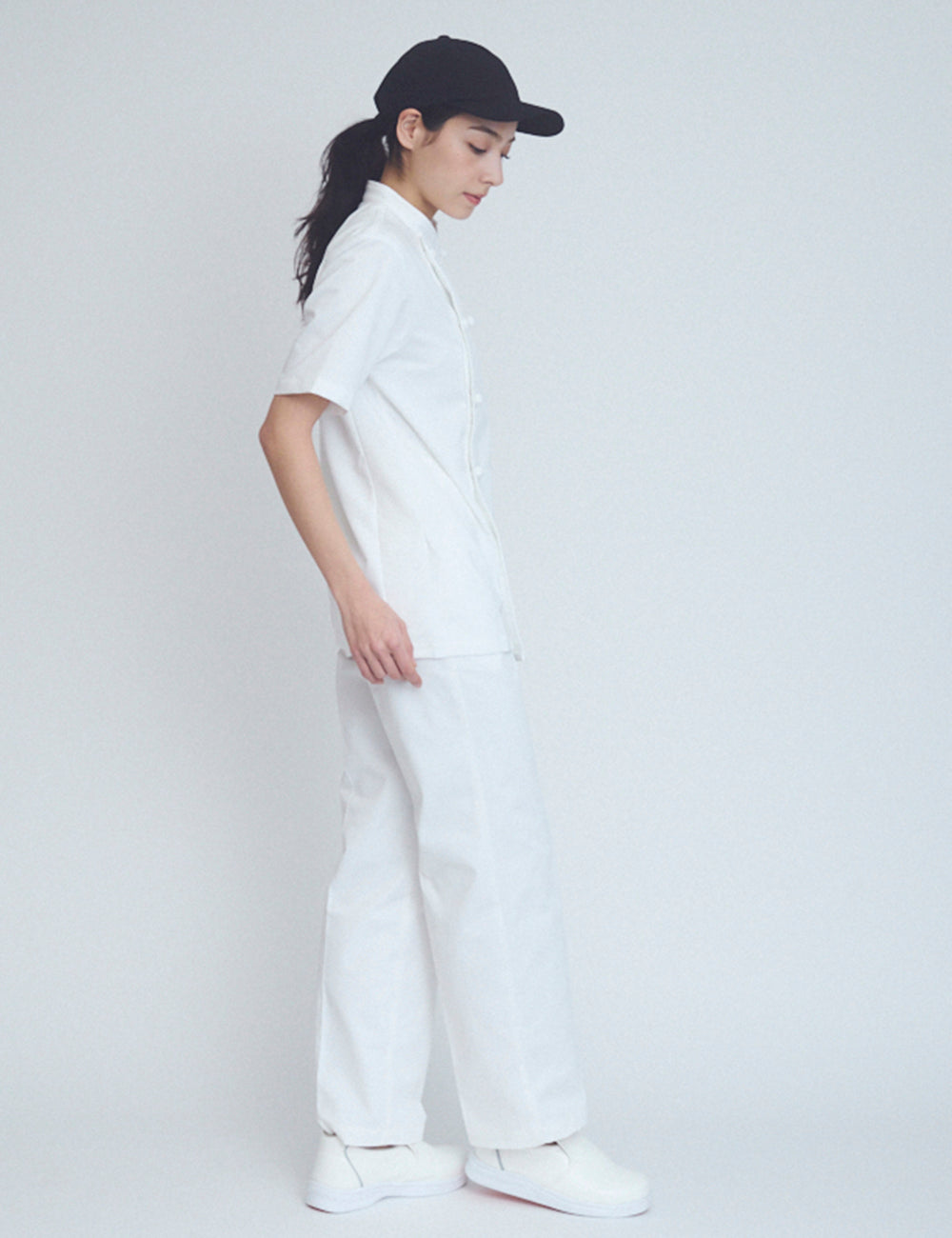 従来のカツラギのコックコートに比べて約半分の重さ。(当社比)肌への接触面は立体構造になっており、べたつかずサラッとした着用感をキープする