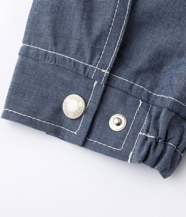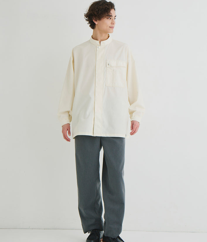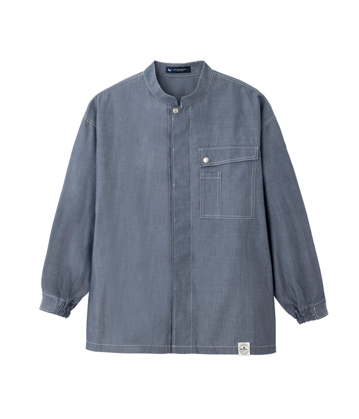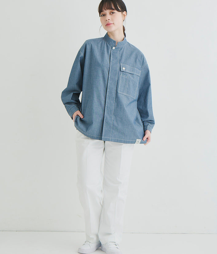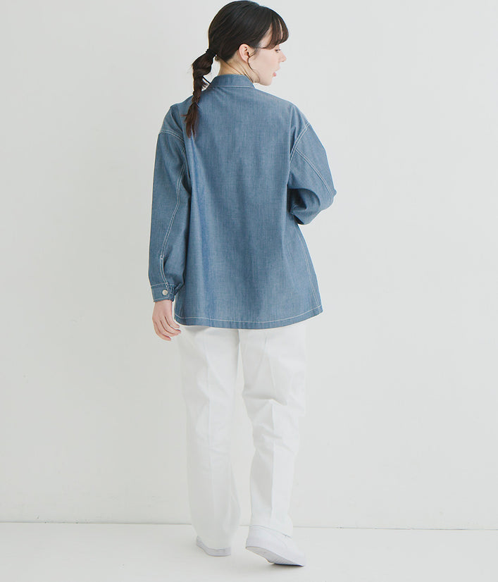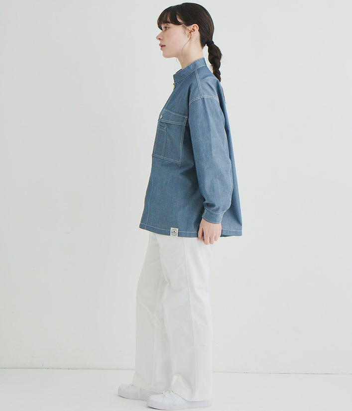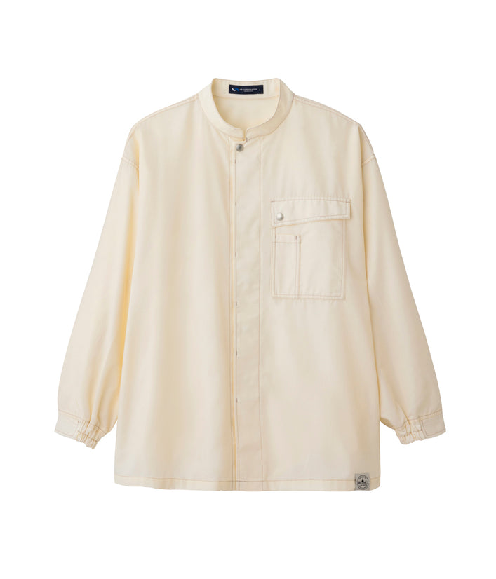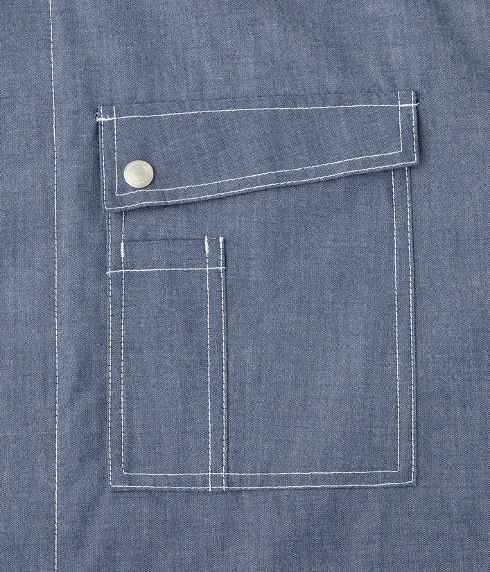 Tシャツと重ね着しても…コーディネイトを色々楽しめます。袖口のゴムやドットボタン、ペン差しポケットなどおしゃれさと機能性を併せ持ちます。