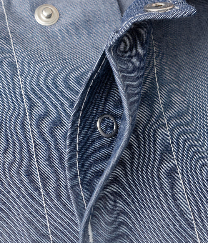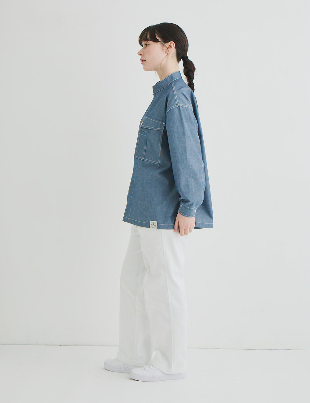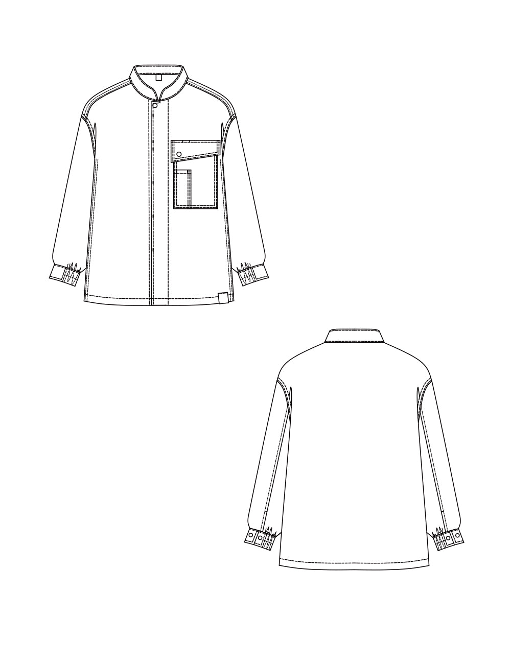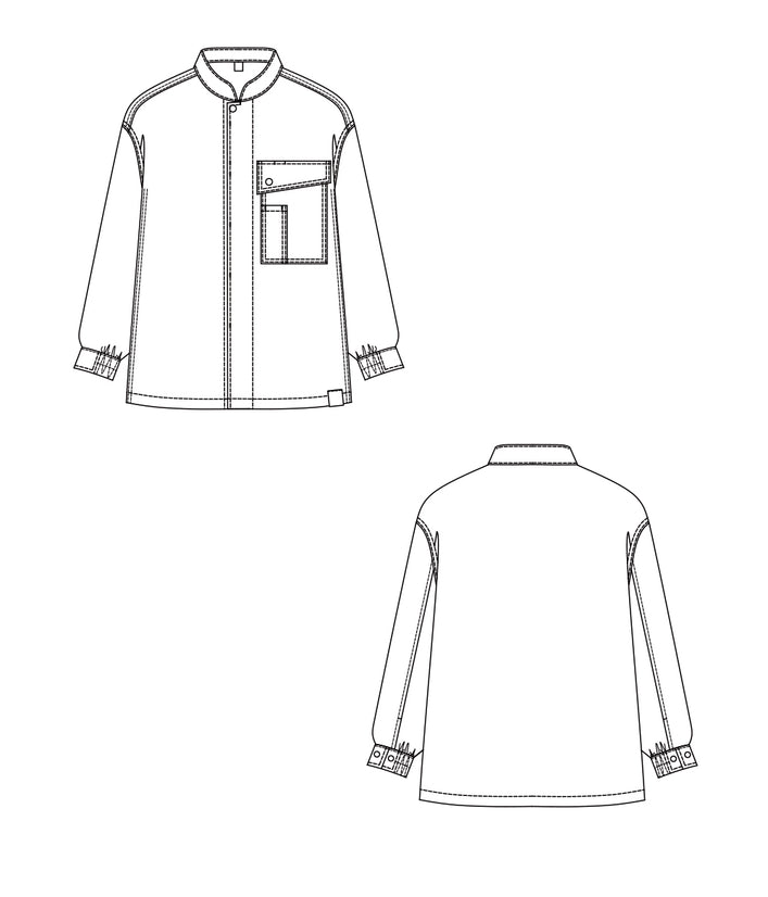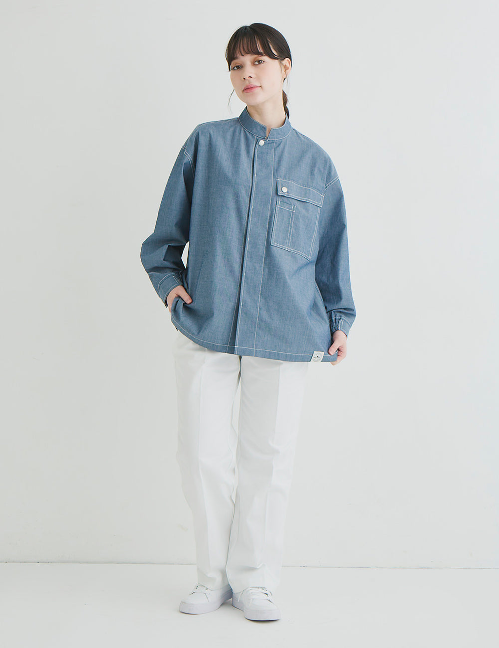 Tシャツと重ね着しても…コーディネイトを色々楽しめます。袖口のゴムやドットボタン、ペン差しポケットなどおしゃれさと機能性を併せ持ちます。