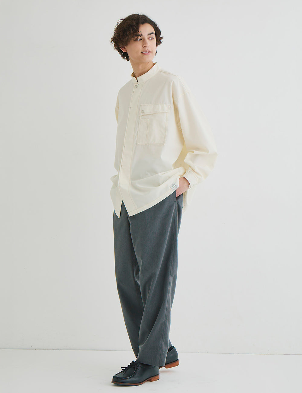 なカジュアルライン。ゆったりとした着心地とたっぷりシルエットで抜け感のあるコーディネイトに仕上がります。1枚で着ても、中にボーダーシャツやビッグ