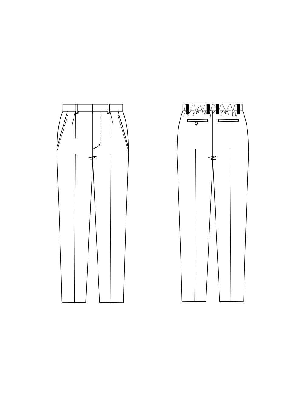 ウェスト後ゴム | ワンタック | ややスリム | ジャストウエスト